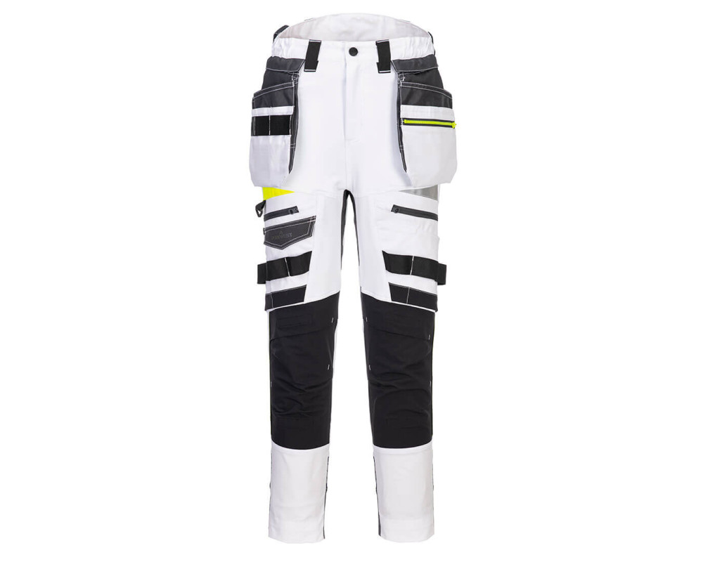 A DX4 levehető lengőzsebes női nadrág okos kialakítású, amely a dynamic 4X stretch alapanyag célzott elhelyezését használja, hogy munka közben maximális mozgásszabadságot biztosítson. Ezek a lengőzsebes nadrágok magasan emelkedő hátsó derékpánttal rendelkeznek, oldalt elasztikusak, ezzel biztosítva a védelmet minden pozícióban. Háromszoros varrás a maximális tartósság érdekében.