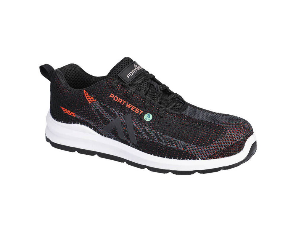 Ez a környezettudatos biztonsági trainer kompozit talpbetétet, szúrásálló textil középtalpat és kettős sűrűségű PU/PU külső talpat kínál a kiváló tapadás és energiaelnyelés érdekében. A felsőrész varrat nélküli, kötött, egységes textilből készült, a további kényelem érdekében párnázott sarokkal.