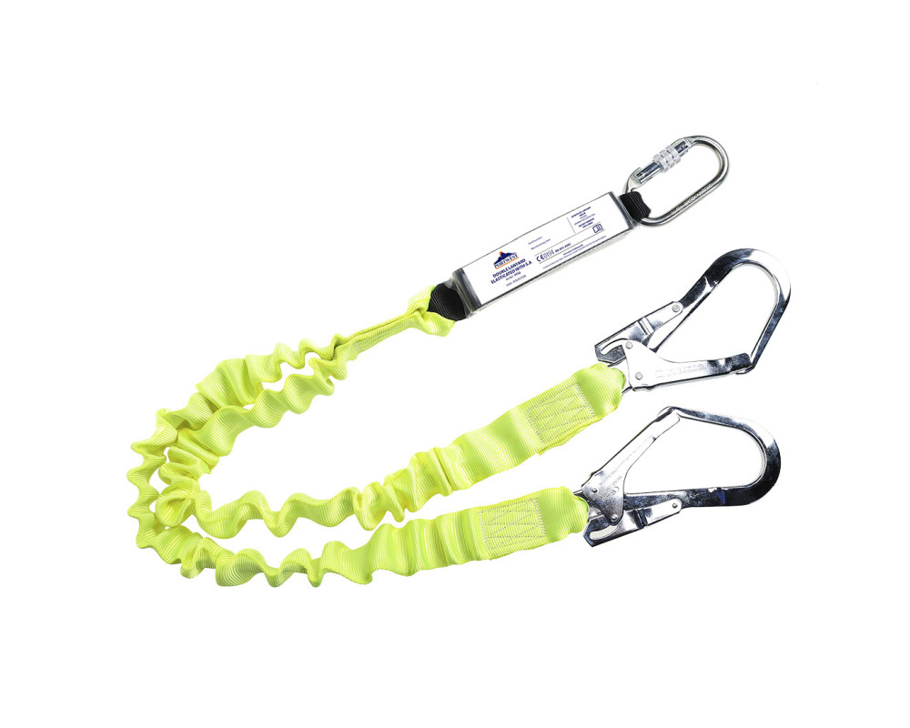 Kettős végződésű, Y kialakítású rugalmas poliészter hevederszalag, mely energiaelnyelővel, karabinerrel és két akasztóhoroggal készül. 180 cm hosszú.
