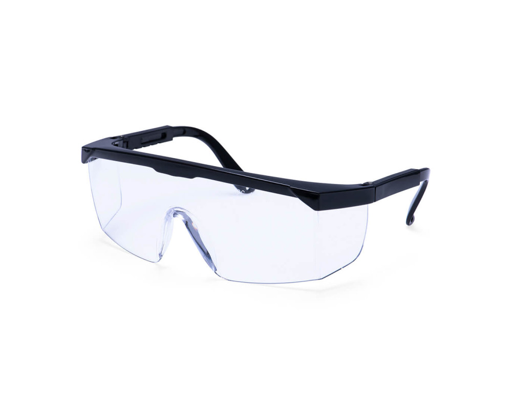 Hagyományos tervezésű védőszemüveg, polikarbonát panoráma lencsével, oldalvédelemmel, állítható szárhosszal. Ez a termék állítható szárakkal, formázott orrhíddal és kontúros szemöldökvédővel is rendelkezik.