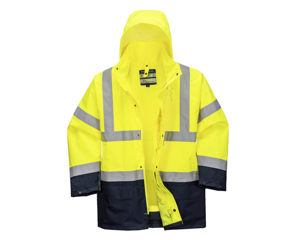 Alkalmazkodó, funkcionális modell, amely kiváló ár-érték arányt biztosít. A külső kabát két praktikus, nagyméretű zsebet tartalmaz, gombokkal állítható mandzsettával és rejtett, állítható kapucnival, míg a belső vízálló kabát levehető, fluoreszkáló polár ujjakkal, 2 nagy oldalzsebbel és sötét kontrasztos panelekkel rendelkezik a szennyeződések elleni védelem érdekében.