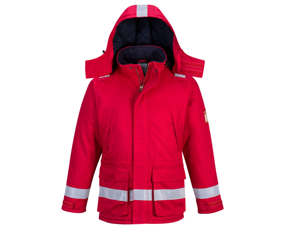 Ez a téli FR dzseki tökéletesen megfelel az offshore ipar követelményeinek. Ugyanabból a külső anyagból készült, mint az FR50, extra vastag vatta szigeteléssel és FR pamut béléssel kombinálva az extra melegség érdekében. Ez a stílus nagy láthatóságú fényvisszaverő szalaggal is rendelkezik, amely duplán van varrva a fokozott láthatóság érdekében. Megfelel az összes előírt EN-szabványnak, beleértve a hegesztési szabványt is. Jellemzők: háromszorosan varrott varratok, jól látható csíkok a vállakon, a karokon és a testen, rejtett, irányú, sárgaréz elülső cipzár és két elülső ferde mellzseb patentokkal. A ruhadarab belső derékszabályzóval is rendelkezik a kényelmes illeszkedés érdekében. Ennek a stílusnak további előnye a levehető kapucni, sárgaréz cipzáras rögzítéssel.