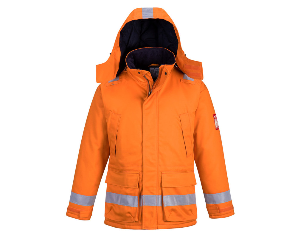 Ez a téli FR dzseki tökéletesen megfelel az offshore ipar követelményeinek. Ugyanabból a külső anyagból készült, mint az FR50, extra vastag vatta szigeteléssel és FR pamut béléssel kombinálva az extra melegség érdekében. Ez a stílus nagy láthatóságú fényvisszaverő szalaggal is rendelkezik, amely duplán van varrva a fokozott láthatóság érdekében. Megfelel az összes előírt EN-szabványnak, beleértve a hegesztési szabványt is. Jellemzők: háromszorosan varrott varratok, jól látható csíkok a vállakon, a karokon és a testen, rejtett, irányú, sárgaréz elülső cipzár és két elülső ferde mellzseb patentokkal. A ruhadarab belső derékszabályzóval is rendelkezik a kényelmes illeszkedés érdekében. Ennek a stílusnak további előnye a levehető kapucni, sárgaréz cipzáras rögzítéssel.