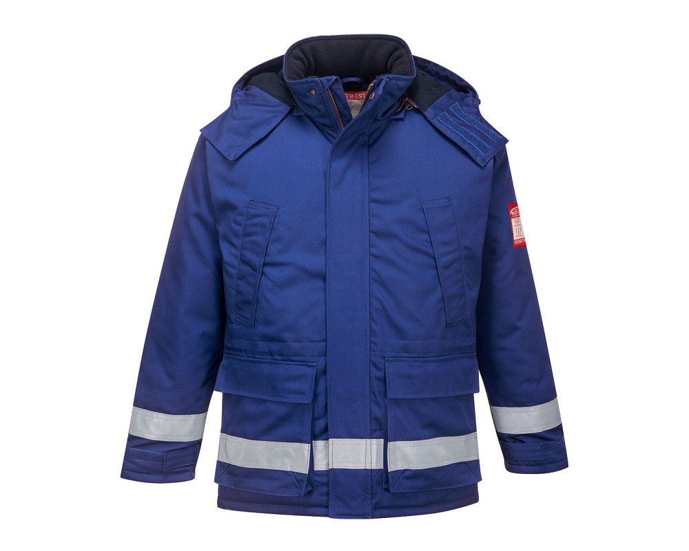 Ez a téli FR dzseki tökéletesen megfelel az offshore ipar követelményeinek. Ugyanabból a külső anyagból készült, mint az FR50, extra vastag vatta szigeteléssel és FR pamut béléssel kombinálva az extra melegség érdekében. Ez a stílus nagy láthatóságú fényvisszaverő szalaggal is rendelkezik, amely duplán van varrva a fokozott láthatóság érdekében. Megfelel az összes előírt EN-szabványnak, beleértve a hegesztési szabványt is. Jellemzők: háromszorosan varrott varratok, jól látható csíkok a vállakon, a karokon és a testen, rejtett, irányú, sárgaréz elülső cipzár és két elülső ferde mellzseb patentokkal. A ruhadarab belső derékszabályzóval is rendelkezik a kényelmes illeszkedés érdekében. Ennek a stílusnak további előnye a levehető kapucni, sárgaréz cipzáras rögzítéssel.