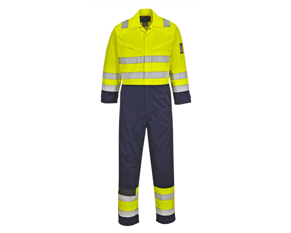A kéttónusú modakril szövet a fényvisszaverő csíkokkal együtt a viselő számára fokozott láthatóságot és teljes védelmet biztosít a veszélyes helyzetekben. A továbbfejlesztett kivitel megfelel az íváthúzás elleni védelem szigorú követelményeinek.
