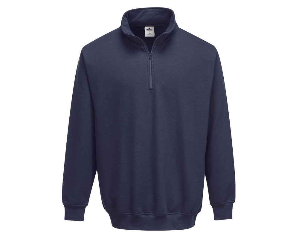 Klasszikus kialakítású pulóver. Magas gallér, 1/4 zippzár, kényelmes viselet.