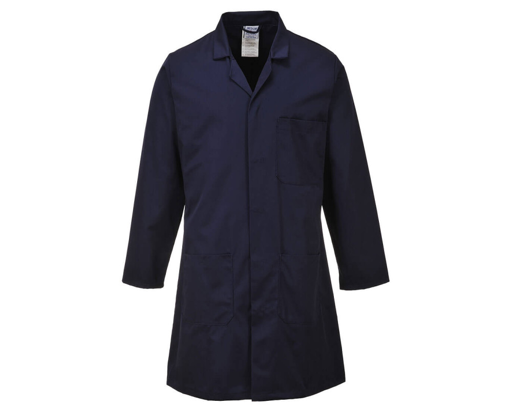 Kiváló köpeny minden munkaterületre. Rejtett patentos kivitel két oldalzsebbel és egy mellzsebbel. Beavatott és kiváló színtartást biztosít.