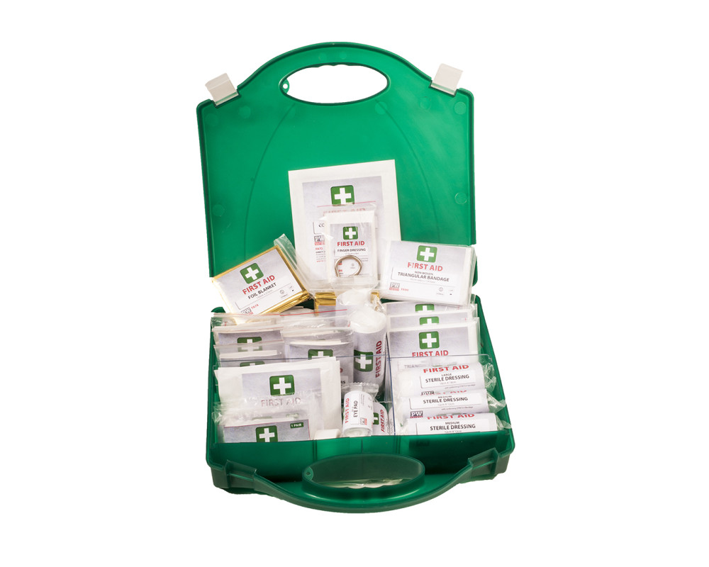 Nagyobb létszámú munkahelyekhez ideális elsősegélyláda megoldás. A legújabb szabványok szerinti tartalommal készül.