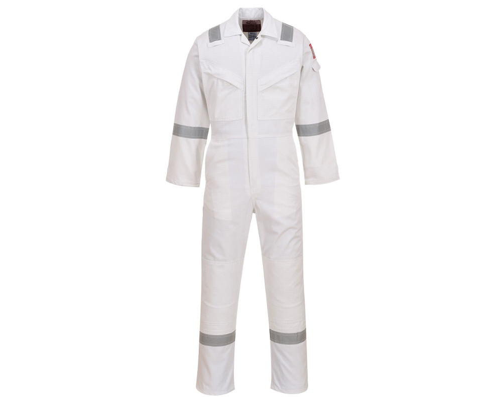 Ez az overall tökéletesen megfelel az offshore ipar követelményeinek. Rendkívül innovatív, lángálló anyagból készült, nagy láthatóságú fényvisszaverő szalaggal, amely a fokozott láthatóság érdekében dupla varrással van ellátva. Az összes előírt EN-szabványnak megfelel, jellemzői közé tartoznak a háromszorosan varrott varratok, a vállakon, karokon és lábakon elhelyezett jól láthatósági csíkok, a rejtett, kétirányú, sárgaréz elülső cipzár és a két elülső ferde mellzseb rejtett sárgaréz cipzárral.