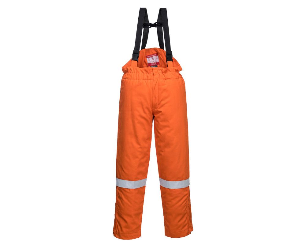 Ez a téli FR Bib és Brace tökéletes az offshore ipar követelményeihez. Ugyanabból a külső anyagból készült, mint az FR50, és egy réteg hozzáadott szigeteléssel és FR pamutbéléssel kombinálva extra melegséget biztosít. Minden előírt szabványnak megfelel, beleértve a hegesztési szabványt is. Jellemzői közé tartoznak a háromszorosan varrott varratok, a magas láthatósági csíkok a lábakon, a rejtett elülső sárgaréz cipzár és a lábszárméretű cipzárak, hogy a nagy csizmák fölé való felhúzáskor is legyen hely.