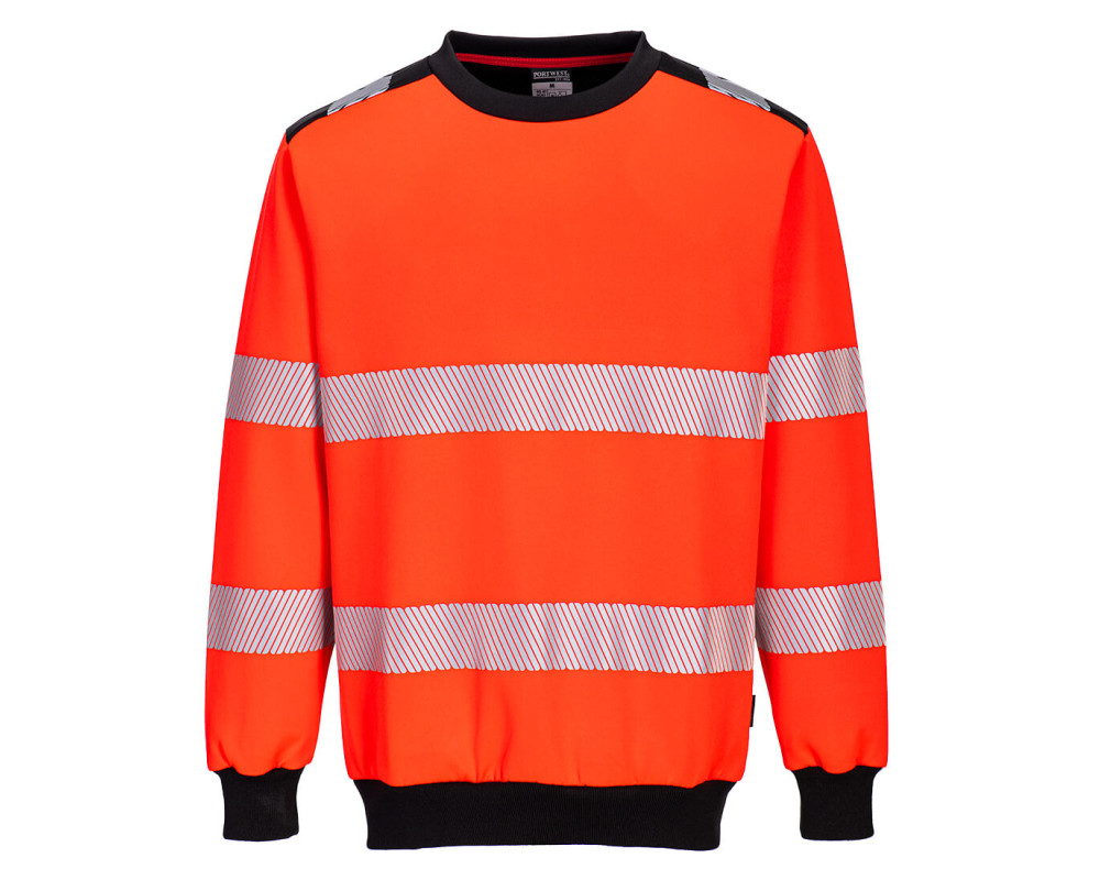 A PW3 hi-vis crew neck pulóvert jellegzetes kialakítása jellemzi, amely a Portwest HiVisTex Pro fényvisszaverő szalagot és a modern kontrasztos paneleket ötvözi. Különleges komfortot biztosít a tágas fazon és a puha tapintású szövet