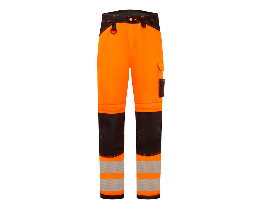 HiVis Tex Pro fényvisszaverő csíkokkal készült strapabíró kevertszálas alapanyag biztosítja a tartósságot és a tökéletes vislési komfortot. Oxford szövet megerősítés a legfontosabb kopási pontokon és háromszoros varrás a maximális tartósság érdekében. Számos kiváló funkció jellemzi: felső nyílású térdzsebek, könnyű hozzáférést biztosító zsebek amik segítségével a szerszámok és a mobiltelefon tárolása biztonságos.