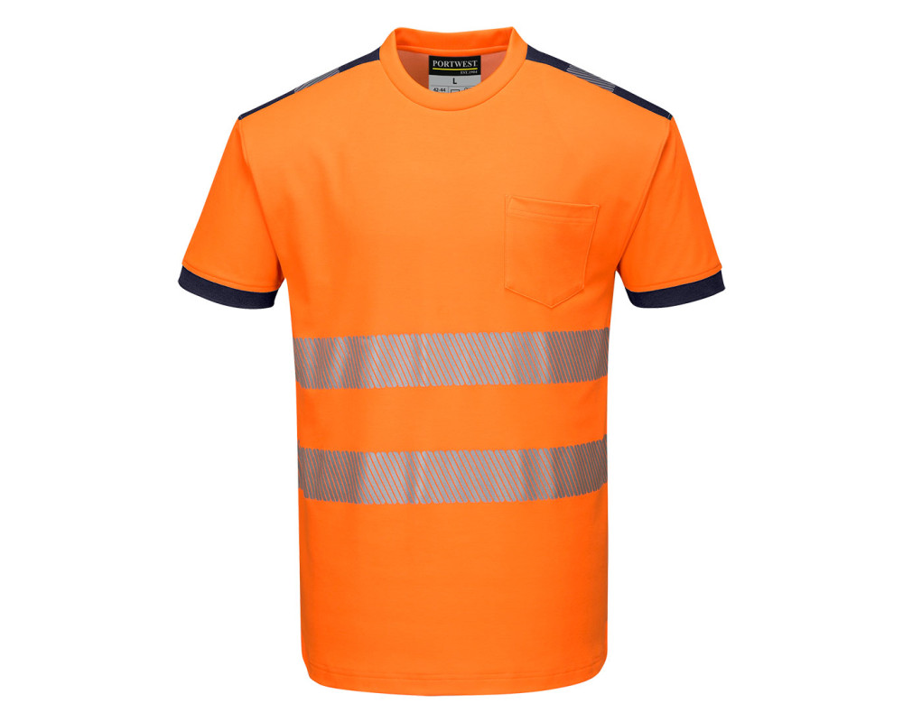 HiVisTex Pro fényvisszaverő csíkokkal készült, Cotton Comfort póló, mely a szegmentált szalag szerkezetnek köszönhetően kiváló mozgásszabadságot biztosít. Könnyű, stílusos és lélegző.
