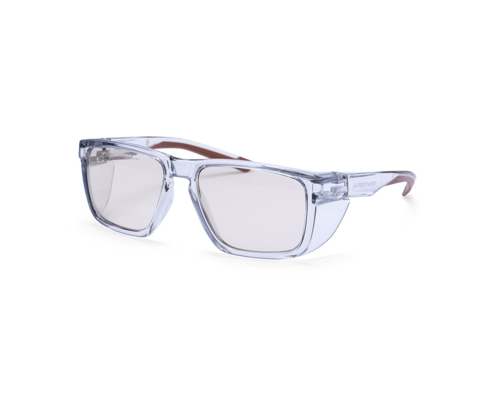 Modern teljes keretes modell integrált oldalsó védelemmel a kiváló keresztirányú védelem érdekében. A világosbarna lencse véd a kék fénytől, segít megelőzni a szem megerőltetését és a kellemetlen érzést, ha sokat van kitéve kék fényforrásoknak, például képernyőknek vagy mesterséges fénynek.