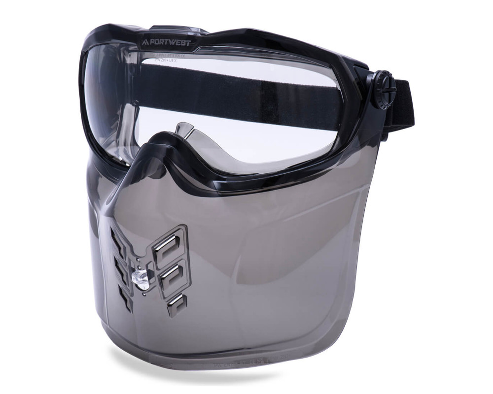 Prémium védőszemüveg a fokozott szem- és arcvédelem érdekében. A folyadékcseppektől, nagy porszemcséktől, olvadt fémtől és forró szilárd anyagoktól való védelemre tervezett teljes sorozat a veszélyes környezetben való biztonságos munkavégzés érdekében elengedhetetlen. Az állvédő kényelmesen felhajtható készenléti üzemmódba, amikor nincs használatban, és a maximális kényelem érdekében csúszka segítségével állítható szellőzőnyílásokkal rendelkezik. Ráadásul a közvetett szellőzésű védőszemüvegünk a legtöbb vényköteles szemüveg fölé is felvehető, így biztosítva, hogy Ön minden körülmények között védve maradjon.