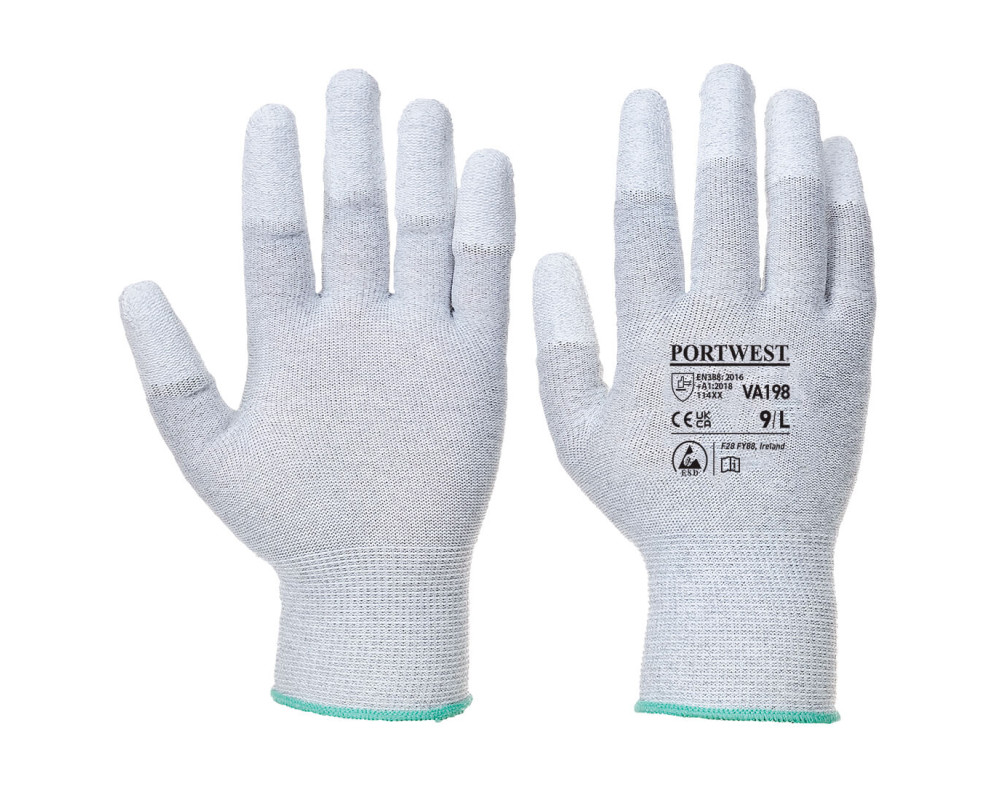 Az ESD ujjvég bevont védőkesztyűnket kifejezetten védőeszköz adagoló automatákhoz fejlesztettük. 13g nylonból és szénszállal készült, hogy elkerülje az elektrosztatikus kisüléseket. Az ujjvégbevonat precíziós munkák esetén kiváló fogásbiztonságot nyújt. A csomagolást úgy tervezték, hogy a védőeszköz adagoló automatákban a helykihasználás a legoptimálisabb legyen.