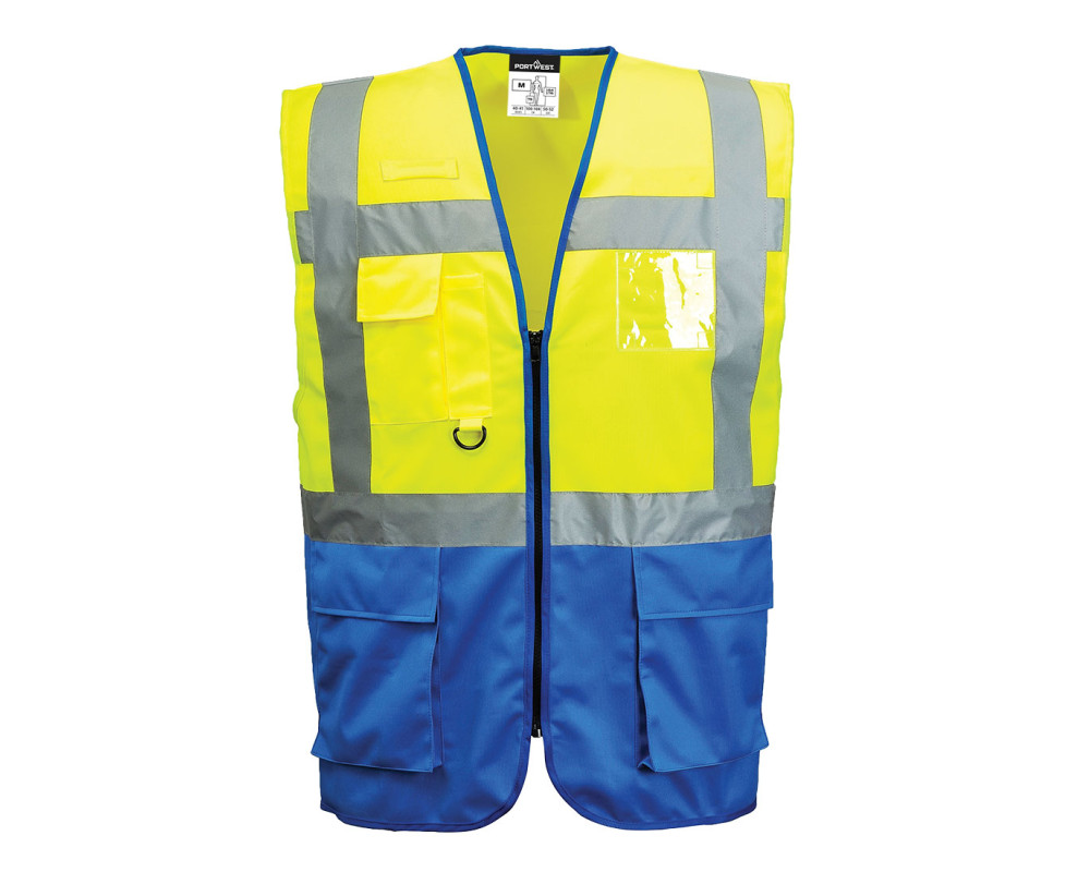 Ez a kéttónusú változat a vezetői mellénykínálatunkban több praktikus zsebbel, kettős igazolványtartóval, d-gyűrűvel és rádióhurokkal rendelkezik. Többfunkciós zsebek, azonosítókártyatartó zseb, zippzáros záródás, mobiltelefontartó zseb.