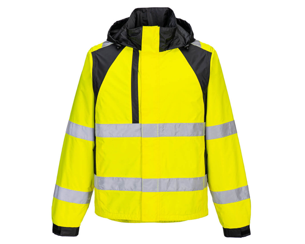 Úgy tervezték, hogy viselője látható és száraz maradjon rossz időjárási körülmények között. Ez a könnyű, stílusos, kéttónusú kabát a könnyű hozzáférés érdekében elrejthető kapucnival, nagyméretű zsebekkel a bőséges tárolásért és dupla viharvédővel rendelkezik, amely védelmet nyújt az időjárás viszontagságai ellen.